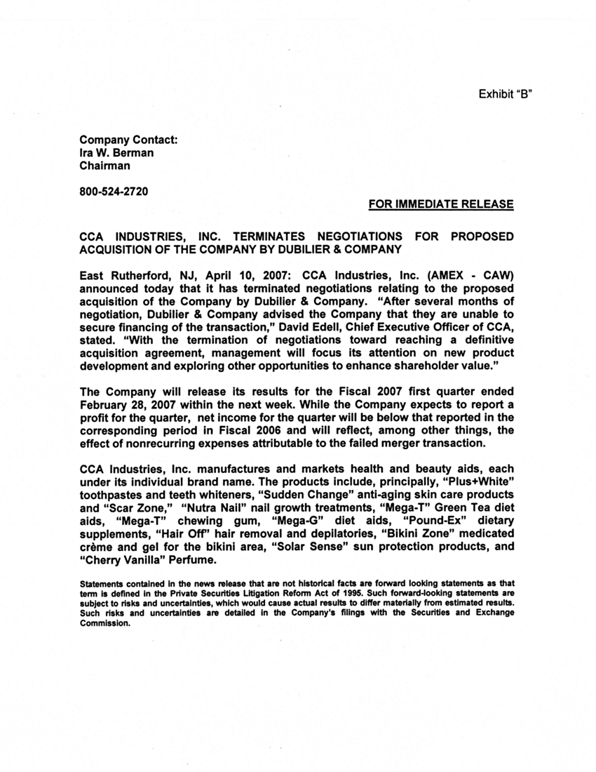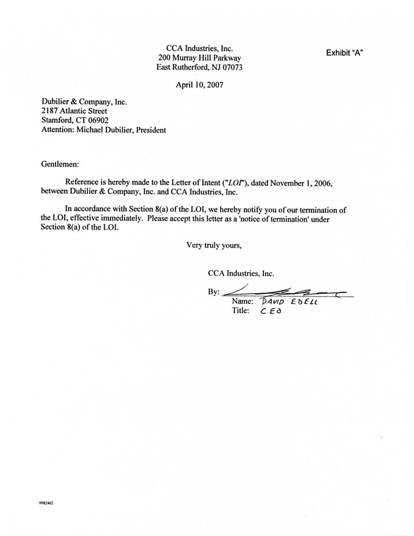 Reference is made to termination of acquisition letter dated April 10, 2007, annexed hereto as Exhibit “A” and news release, released April 10, 2007 annexed hereto as Exhibit “B.”